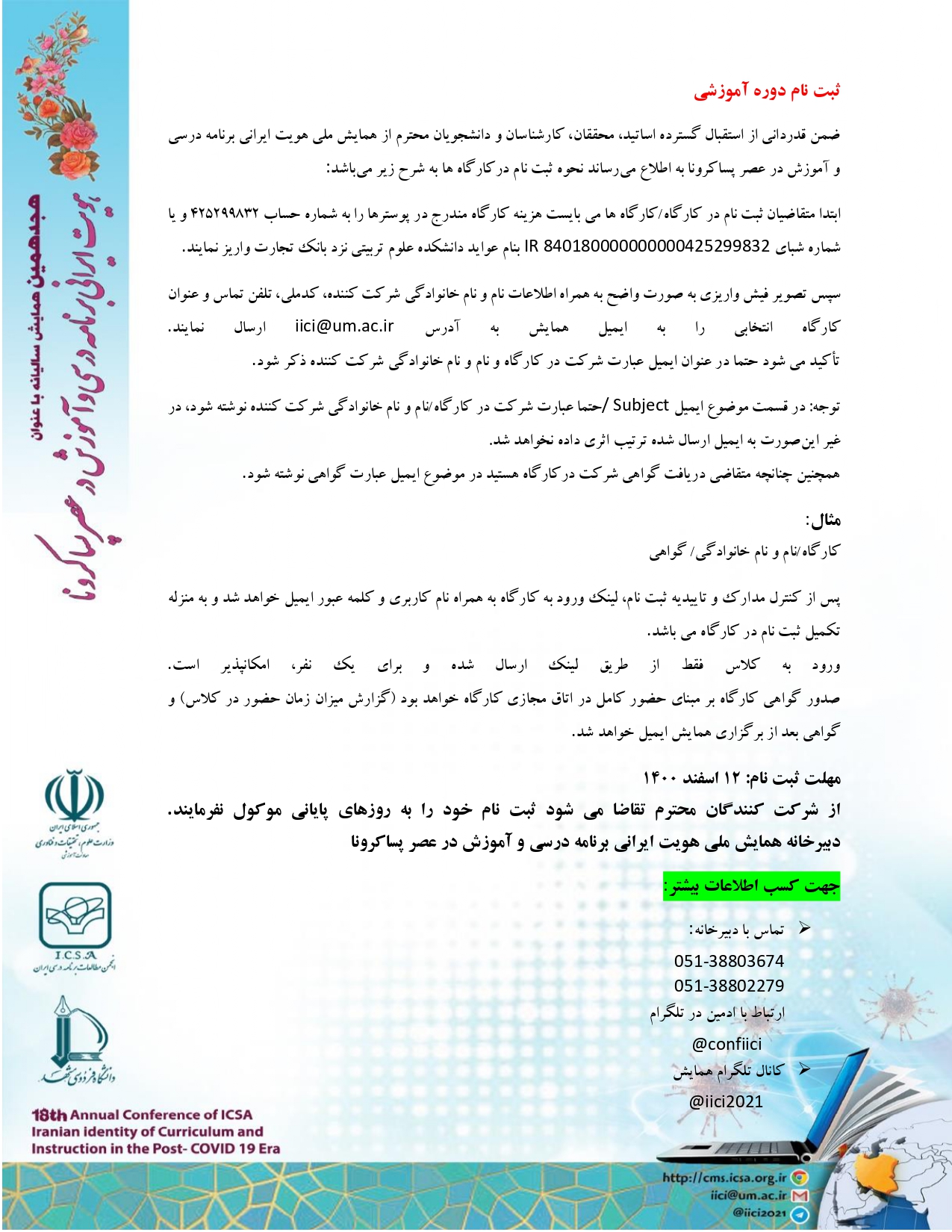 با عنوان : هویت ایرانی برنامه درسی و آموزش در عصر پسا کرونا